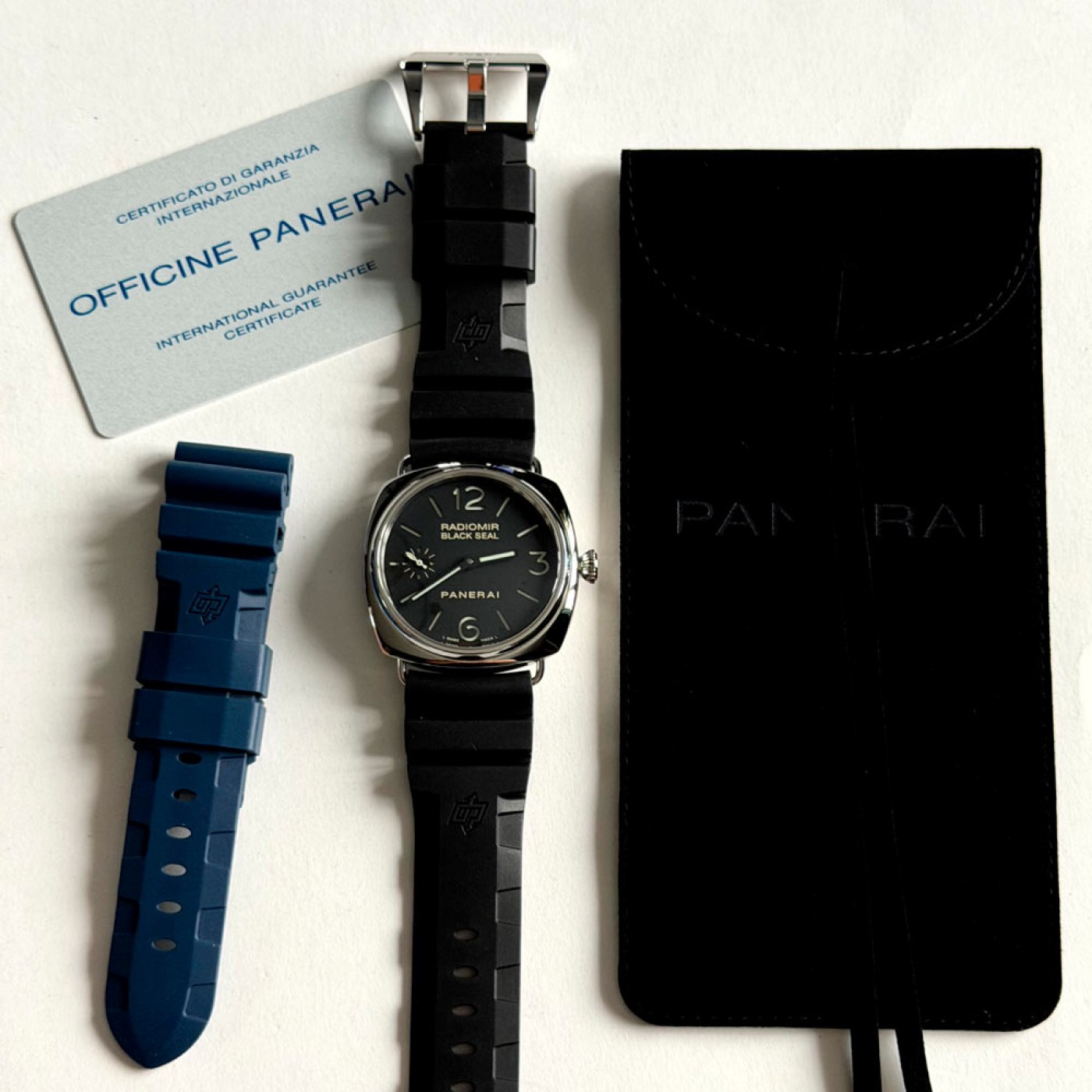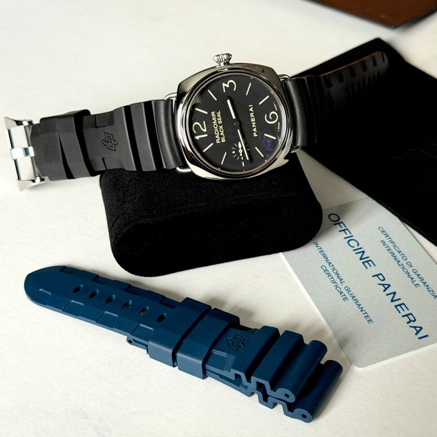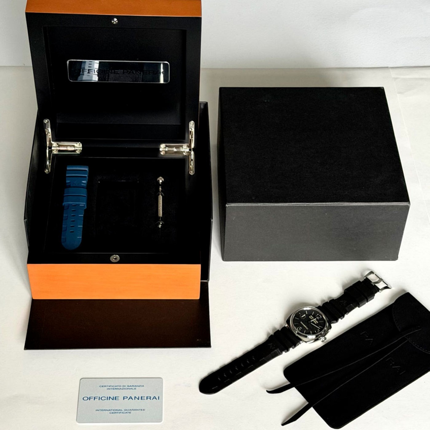 Полный комплект коробок и документов. + дополнительный синий ремешок Panerai. Идеальное состояние часов. Куплены в 2019 году в ОФ Магазине Панерай